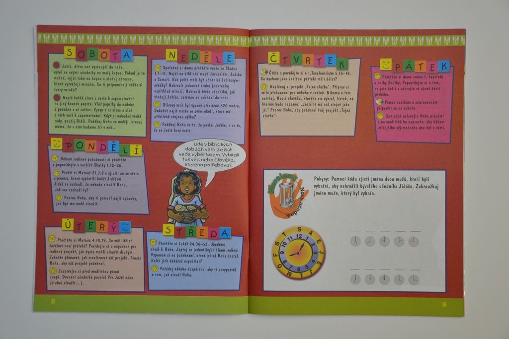Přesto budou děti potřebovat také a především Vás, abyste jim pomohli vnést poselství o Boží lásce a milosti do života rodiny a dobře upevnit to, co se učí v sobotní školce. Promyslete si, kdy si vyhradíte čas na každodenní studium se svým dítětem. Během společných pobožností si spolu čtěte biblický příběh a úkol a také se zapojte do aktivit, které mají upevnit biblické poselství v dětském myšlení a cítění.
